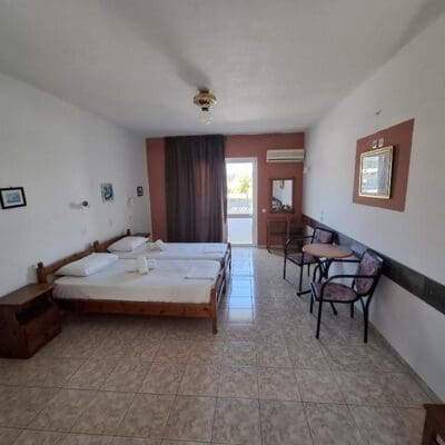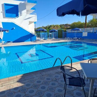 Bij Studio’s Meropi kun je genieten van een ontspannen sfeer. Het complex beschikt over een verfrissend zwembad en een kinderbadje, perfect voor het hele gezin. Ligbedden en parasols zijn beschikbaar om te ontspannen onder de zon. De pool- en snackbar zorgen voor heerlijke verfrissingen en lichte maaltijden gedurende de dag, zodat je zorgeloos kunt genieten van je vakantie. Of je nu wilt relaxen bij het zwembad of de lokale omgeving wilt verkennen, Studio’s Meropi is de ideale plek voor een fijne vakantie op Rhodos.