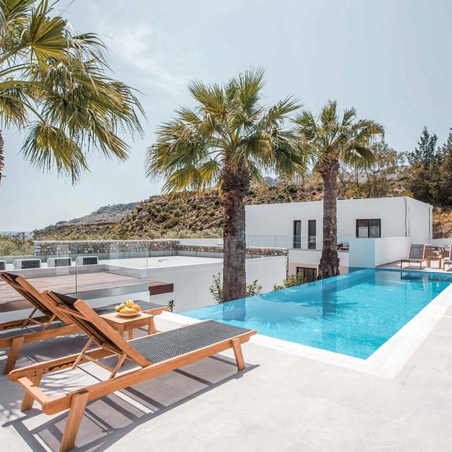 Op een rustig plekje op Rhodos kwam ik dit hotel tegen. Het was zelfs nog in aanbouw. Ik besloot een kijkje te gaan nemen, want ik had wel eens het idee dat dit een mooi adresje zou gaan worden. Van de buitenkant zagen de villa's er namelijk modern, maar toch karakteristiek uit. Ik werd met open armen ontvangen, ik sprak met de eigenaar van het hotel en kreeg zelfs een rondleiding. De binnenkant past mooi bij de buitenkant. De moderne inrichting zorgt voor een luxueuze sfeer en de houten balken aan het plafond geven een karakteristiek en warm gevoel van thuis. De villa's hebben elk een eigen zwembad… Zie jij het je al voor je? Wakker worden in een heerlijk comfortabel bed en vervolgens een plons maken in je eigen zwembad? Ik in ieder geval wel! Rust en plezier gegarandeerd!