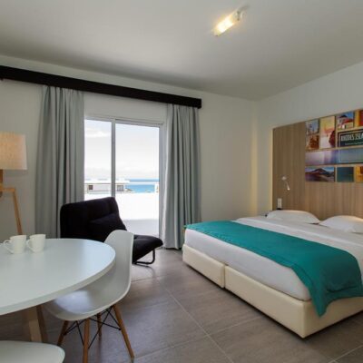 Slapen met het comfort van thuis, In stijl van designer Paul Linse, Met een geweldige koffiebar, Pizza of Pita Gyros als snack?, Het zwembad voor de deur, Gezellig Trianta om de hoek & inclusief transfers.