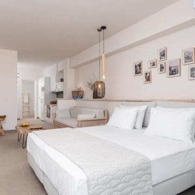 De kamers en suites van 8 Moons Boutique Apartments liggen rustig, in het schilderachtige Avlakia. Elke suite opent naar een privéterras met betoverend uitzicht over zee en toegang tot een kleine, rustige baai met comfortabele strandbedden. Het ontbijt is een feest van lokale smaken en liefdevolle details. Voor de actieve reiziger zijn er prachtige wandelroutes in de buurt, zoals door de Nachtegalenvallei richting Manolates en de paden naar Ambelos, Stavrinidis, Vourliotes en Seitani. Met je huurauto ontdek je in je eigen tempo de omliggende wijngaarden, vissershaventjes en de culinaire verrassingen van Kokkari.