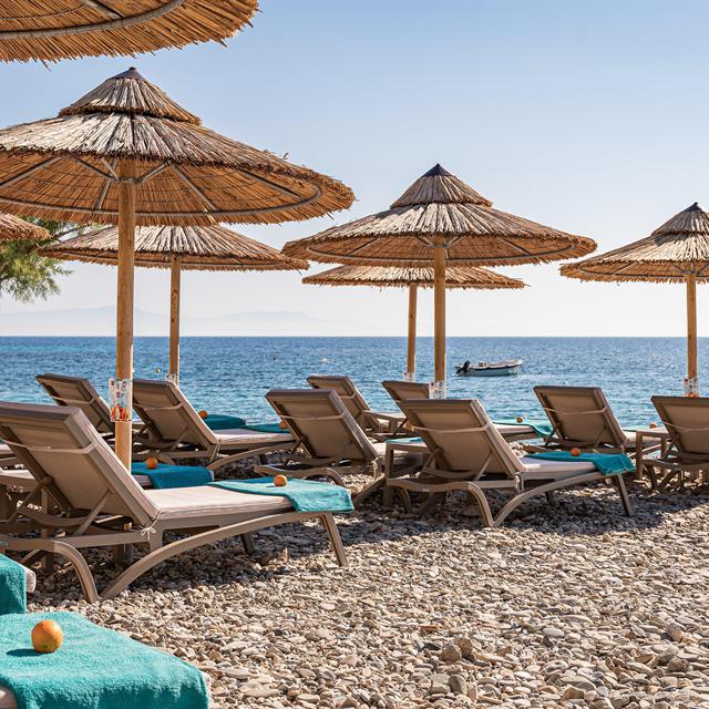 Een betere start van de dag kan ik me nauwelijks voorstellen: net heb ik een verfrissende ochtendduik genomen in het kristalheldere water, op slechts een paar stappen van mijn suite. Daarna wachtte me een met zorg samengestelde schaal vol tuinvruchten, zelfgemaakte marmelade, brood, kaas en een flesje wijn. Alles met uitzicht op de eindeloos blauwe Egeïsche Zee… Mijn dagen hier glijden in een heerlijk traag tempo voorbij. Soms op een comfortabel ligbed onder de zon, soms al wandelend door geurende olijfgaarden of dwalend over slingerpaadjes richting charmante dorpjes. Wat een droomplek.