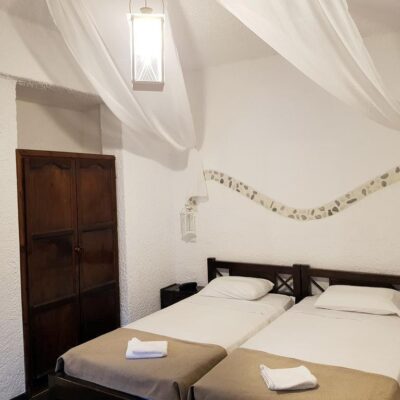 In dit hotel vier je je vakantie vlakbij zee.Voel de warmte van de Griekse gastvrijheid en de Griekse zonnestralen. Je dag begin je natuurlijk met een lekker ontbijt. Hierna valt je oog op een van de ligbedden. Een fijne plek om je ochtend door te brengen. Af en toe een frisse duik in het zwembad en daarna slurp je van je favoriete cocktail. Hoor je de zee al? Binnen no time lig je weg te dommelen op het strand. Terug in het hotel is het tijd om naar het à la carterestaurant te gaan. “Wat zijn de lekkerste Griekse specialiteiten?”. Het is hier smullen geblazen … De volgende dag heb je zin om de Griekse cultuur te ontdekken. Het centrum van Karlovassi ligt op 1 kilometer afstand. Als je van shoppen houdt, dan ben je hier aan het juiste adres.