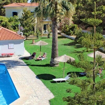 Zeus Appartementen op Samos is een comfortabele en gemoedelijke plek, gelegen op slechts 750 meter van het strand en op loopafstand van het centrum van Ireon. Het complex biedt een zwembad, een kinderzwembad en een poolbar waar je kunt ontspannen en genieten van een drankje. Met de rustige ligging en de vriendelijke sfeer is het de ideale place to be voor een ontspannen vakantie. Ireon is een charmant dorpje aan de kust van Samos, bekend om zijn rustige stranden en gezellige tavernes. Het is ideaal voor wie op zoek is naar een authentieke Griekse sfeer. Samos zelf is een prachtig eiland met groene bergen, wijngaarden en historische bezienswaardigheden. Bezoek bijvoorbeeld het beroemde Heraion, een oud heiligdom, of maak een wandeling door de prachtige natuur. Zeus Hotel is een prima uitvalsbasis om zowel Ireon als de rest van het eiland te ontdekken.