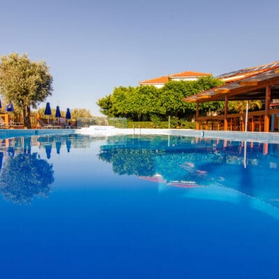 Aan de zuidkust van Samos in de plaats Kampos (beter bekend als Votsalakia) vind je dit gemoedelijke complex; Kampos Village. Dit authentieke Griekse resort biedt alles voor een onbezorgde vakantie op Samos met de hele familie! Je verblijft in het hotel op basis van All Inclusive, dus al je maaltijden en drankjes zijn inbegrepen. Hoe lekker is dat! De kinderen vermaken zich prima in de speeltuin, miniclub of in één van de zwembaden. Terwijl de ouders heerlijk ontspannen en genieten van de Griekse zon. Toch liever sportief bezig? Het hotel beschikt ook over een fitnessruimte! Kampos (Votsalakia) is een gezellige badplaats aan de Egeïsche zee met vele tavernes en winkeltjes. Er zijn ook genoeg activiteiten buiten het hotel te vinden; beklim bijvoorbeeld de Kerkis, ga de zee op met een surfboard of luier lekker op het strand bij één van de tavernes en neem af en toe een duikje om af te koelen. Waar wacht je nog op? Boek nu jouw vakantie naar Kampos Village!