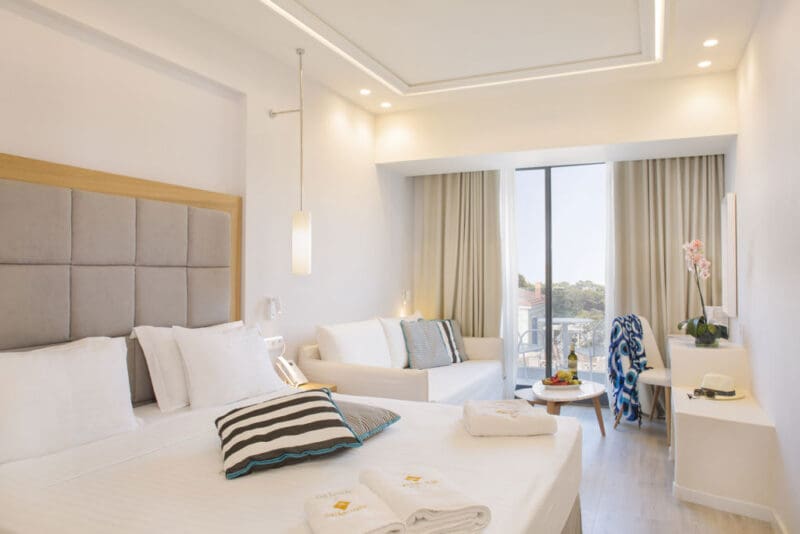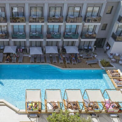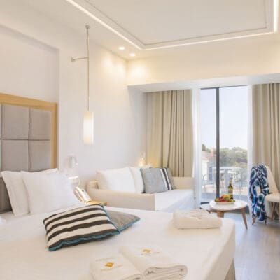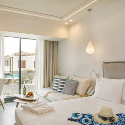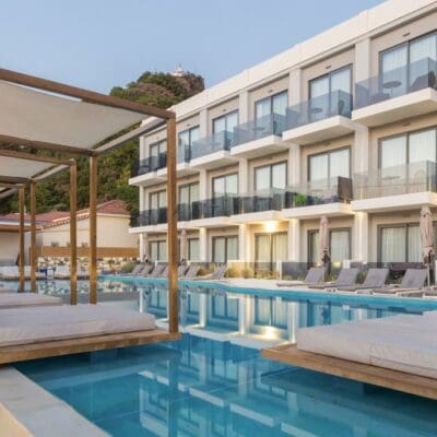 Zodra je Samian Mare Suites & Spa binnenloopt weet je het; dit wordt een vakantie om heerlijk bij te komen van al je druktes thuis. In dit kleinschalige all inclusive hotel dompel je je onder in een easy going en superrelaxte sfeer. Kom heerlijk tot rust in je smaakvol ingerichte hotelkamer, plof neer op één van de fijne ligbedden bij het zwembad, droom lekker weg bij goede loungemuziek of geniet van een ontspannen behandeling in de spa. In beweging blijven? Dit doe je bij de kleine openbare outdoor fitness. Natuurlijk kun je ook op verkenningstocht in de directe omgeving van het hotel. Daar is genoeg te zien en doen. Wat denk je bijvoorbeeld van een wijnproeverij bij een populaire lokale wijnmakerij op slechts 200 meter van het hotel, een wandeling naar de Potami watervallen en ruïnes van een oud kasteel, een bezoekje aan de prachtige byzantijnse kerkjes in de omgeving of een heerlijke middag op het prachtige Potami strand? Eenmaal terug in het hotel schuif je gemakkelijk aan in het buffetrestaurant voor een overheerlijke maaltijd en drankje. Met het relaxte geluid van de waterval van het zwembad kom je helemaal in ontspannen sferen. Zo mooi kan jouw vakantie op Samos zijn!