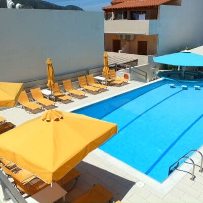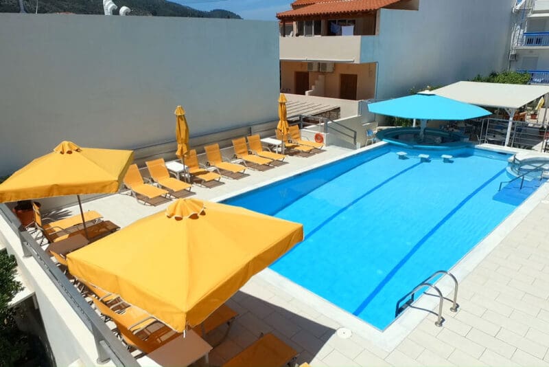 Het kleinschalige Blue Sea hotel is gelegen in het gemoedelijke en typisch Griekse Kokkari en op steenworp afstand van het strand. In het hotel kun je genieten van een heerlijk buitenzwembad met zonneterras, een gezellige poolbar en een café waar je onder andere kunt ontbijten. Vanuit Blue Sea Hotel kun je heerlijk slenteren langs de levendige boulevard met tal van restaurantjes en tavernes. Huur een scooter of een auto en ontdek de prachtige omgeving van Samos. Een vakantie in Blue Sea hotel is een feestje.