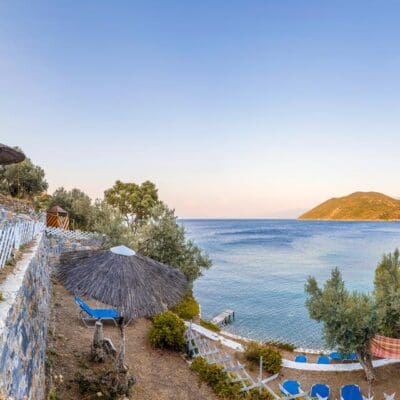 De natuur op Samos is schitterend, en toen ik hoorde over Nafsika Villas, voorheen bekend als Petra Mare Village, wist ik dat ik erheen moest. Dit charmante complex ligt op een heuvel, omgeven door geraniums, geurige kruiden en eeuwenoude olijfbomen. Wat een geweldige plek om tot rust te komen! En het beste is dat het strand op slechts 350 meter afstand ligt. Hier heb je alle elementen van de natuur binnen handbereik.