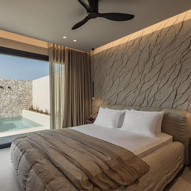 Bij mijn aankomst in PATHOS Private Villas word ik direct betoverd door de schoonheid en luxe van mijn villa. Eleni, de gastvrouw, verwelkomt me met een glimlach en vertelt trots: "Elke villa is zorgvuldig ontworpen, zodat je kunt ontsnappen aan de hectiek en volledig kunt opgaan in de omringende natuur." Terwijl ik door de villa wandel, merk ik het verfijnde interieur op: natuurlijke materialen, elegante meubels en grote ramen. Ik stap naar buiten en zie mijn privézwembad in de zon glinsteren, en ik hoor niks anders dan het rustige geluid van de zee in de verte. Eleni biedt me een welkomstdrankje aan en zegt: "Dit is jouw plek voor de komende dagen, om je volledig te ontspannen." Terwijl ik me neerlaat op een ligbed bij het zwembad, besef ik dat dit de perfecte plek is om alles los te laten en de ultieme luxe en rust te ervaren.