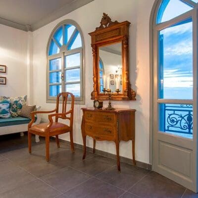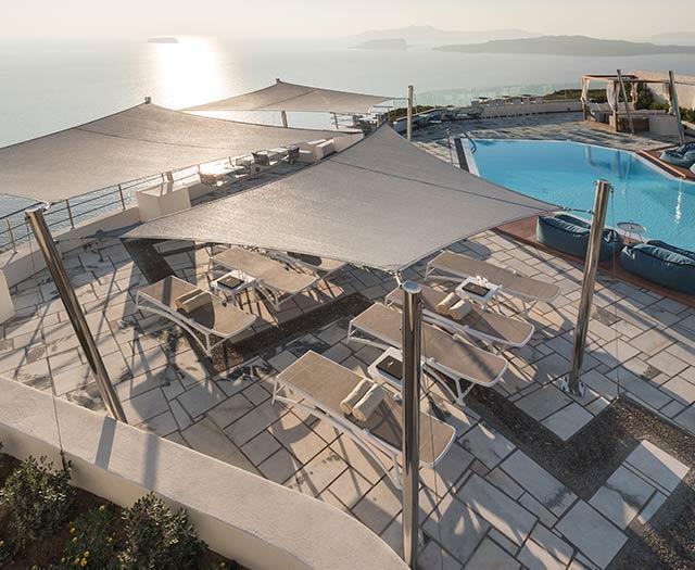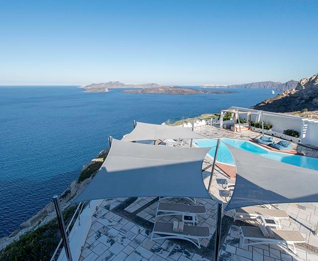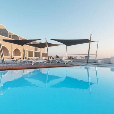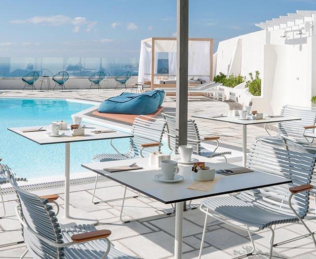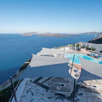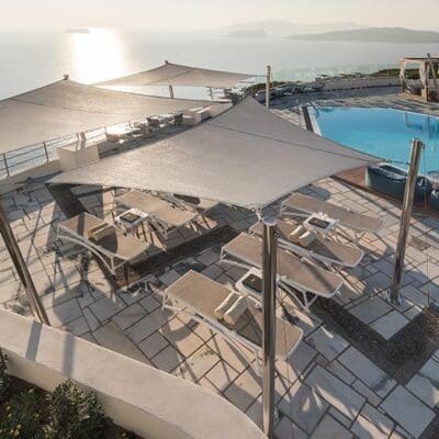 Ik kan ook niet anders zeggen dat deze man de juiste locatie heeft uitgekozen. Het is hier zo romantisch bij Caldera’s Dolphin Suites. Zeker nu in de avond de lichtjes aan staan en we zijn getrakteerd op een bijzondere zonsondergang over de oneindige zee. Tijdens een vakantie op Santorini hangt de romantiek zeker in de lucht en dit moderne boetiekhotel maakt het plaatje helemaal compleet.