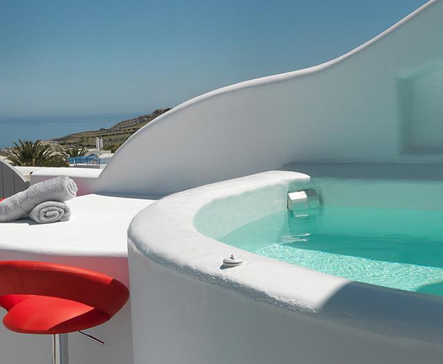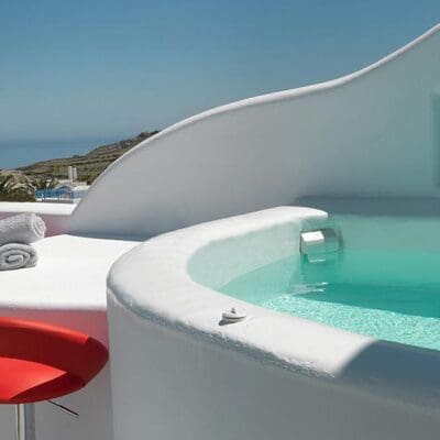 “Eliza, ik wil je mijn favoriete plekje op Santorini laten zien” zegt George. Samen drinken we de laatste slok van ons verfrissende drankje en gaan op weg naar Drops Villas. Mijn goede vriend George heeft me veel verhalen verteld over zijn luxe villa's. Hij is vooral erg trots op het feit dat hij de gebouwen volledig zelf ontworpen heeft. George is architect en heeft veel tijd en liefde in de villa's gestoken.