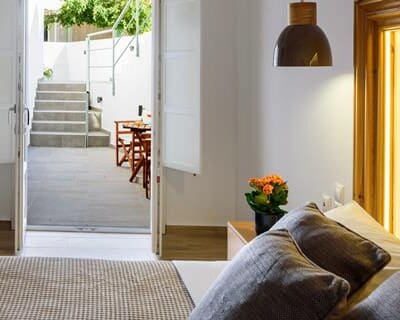 Kleinschalig en persoonlijk, In het gezellige dorp Kamari, Op loopafstand van het strand, Authentieke Cycladische stijl, Zwembad met zonneterras, Moderne en traditionele kamers & inclusief transfers.