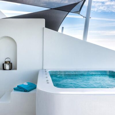 Intiem boutique hotel gevoel, Slechts 800 meter van Oia, Infinity pool met zeezicht, Smaakvolle chef-creaties, Ligbedjes half in het water, Privéveranda met gouden uur & inclusief transfers.
