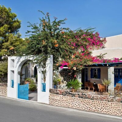 Dit hotel ligt in het kleine centrum van Akrotiri op Santorini. Het hotel is gebouwd als een klein dorpje en heeft het zwembad als middelpunt. In de mooie tuin is het heerlijk relaxen. De kamers zijn eenvoudig, maar netjes ingericht. De supermarkt, taverne en de bushalte liggen vlakbij en vanuit het hotel kun je alle 'must sees' van het eiland af. Breng bijvoorbeeld een bezoekje aan Akrotiri de archeologische stad ligt op steenworpafstand. Of het bijzondere rode strand. Met de auto ben je er zo. Wat je ook zeker niet moet missen, is de fantastische zonsondergang vanaf de oude vuurtoren. Neem een kleedje, een hapje en een drankje mee, en geniet!