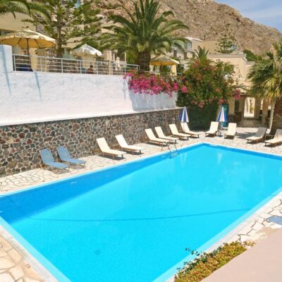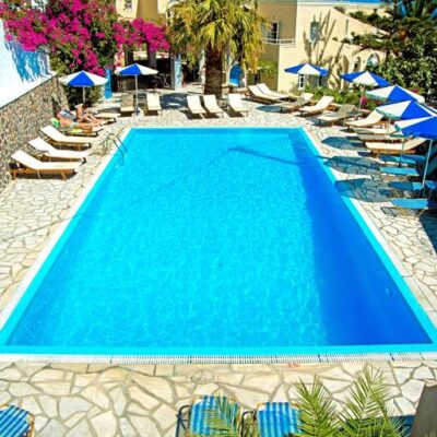 Dit hotel ligt iets verder van het centrum, vlak bij de berg waar de oude route naar de hoofdstad Fira heen leidt. Door deze ligging is er een fantastisch panoramisch uitzicht op Kamari. De vriendelijke eigenaren zijn erg creatief met de inrichting van de kamers geweest vandaar dat ze onderling van elkaar verschillen. Een heerlijk hotel op een rustige plek en toch vlak bij het leuke Kamari en het strand.