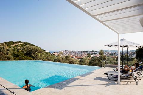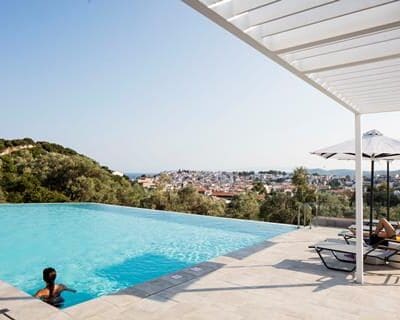 Midden in het groene landschap en net buiten het centrum van Skiathos stad ligt dit pareltje. Een fijn aparthotel voor jouw vakantie naar Griekenland. Het centrum van Skiathos stad is op loopafstand. Vanaf het zwembad kun je het al zien liggen. Ook heb je prachtig uitzicht op de Egeïsche Zee. Ontspan bij het zwembad, haal een verkoelend drankje in de bar en maak plannen voor morgen. Wat wordt het? Nog meer ontspanning of ga je het eiland ontdekken?