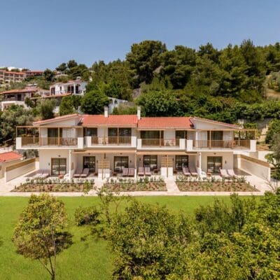 Dome Island Skiathos is een nieuw gebouwd en elegant hotel, ideaal voor wie op zoek is naar ontspanning en een rustige vakantie. Het hotel ligt in een rustige omgeving en biedt een harmonieuze omgeving waar je in alle rust kunt genieten van uitzicht op de Middellandse Zee. Het combineert eigentijds design met veel goede voorzieningen. De ruime en smaakvol ingerichte kamers hebben een balkon met uitzicht op het kristalheldere water of de weelderige groene omgeving.