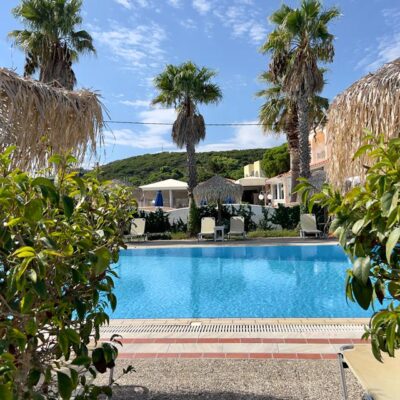 Dichtbij het strand en in een rustige omgeving ligt Hotel Muses. De traditionele kamers zijn verspreid over witte, sfeervolle gebouwtjes die omringd worden door een groene tuin, waardoor het bijna een Grieks dorpje lijkt. Aan het zwembad van dit hotel kun je lekker gaan liggen onder een rieten parasolletje met een goed boek uit de bibliotheek van het hotel. Het wonderschone strand ligt op een paar minuten lopen en voor de kleine gasten is er een speeltuin. In de buurt van het hotel zijn een supermarktje, wat winkeltjes en knusse restaurantjes. In het hotel zelf serveren ze de alom bekende Griekse gyros en de lekkerste verse visjes van de gril.