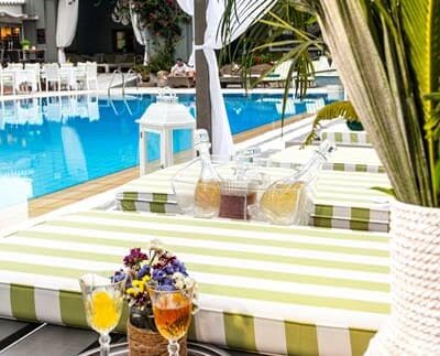 Welkom bij La Piscine Art in Skiathos. Dit 5 sterrenhotel straalt gastvrijheid uit en dat voel je meteen bij binnenkomst. Het hotel is door de kunstzinnige eigenaren smaakvol en huiselijk ingericht. De locatie is daarbij perfect, je loopt zo naar het gezellige centrum van Skiathos stad of de haven. Met het Adults Only formule kom je heerlijk tot rust bij het zwembad en heb je eindelijk eens tijd om dat ene boek uit te lezen. Sluit de avond af met een heerlijk diner in het romantische à la carte restaurant met een bijpassende wijn uit de wijnkelder. Vakantie!