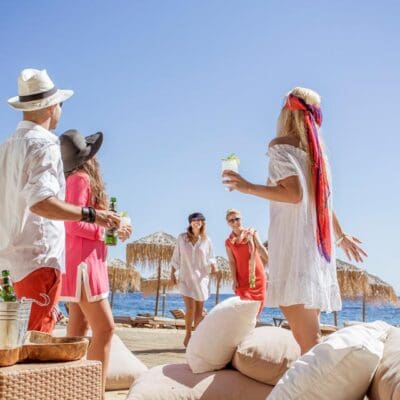 Op het strand ligt restaurant Ammos, waar je met het geluid van de golven op de achtergrond en uitzicht over de zee van de lekkerste Griekse gerechten kunt genieten, maar waar ook de lekkerste verse vis op de kaart staat. In restaurant Piperia sieren Italiaanse gerechten de menukaart en in restaurant Churrasco is het vers gegrilde vis en vlees waar uit gekozen kan worden. Na een heerlijk diner is de P Club Lounge Bar de ideale plek om met een drankje van sfeervolle livemuziek te genieten.
