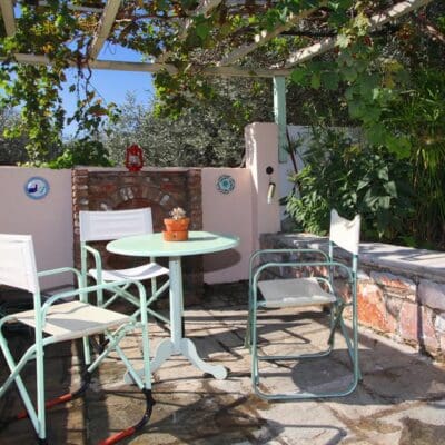 De ligging is ideaal voor wie wil combineren: de pittoreske straatjes, tavernes en winkeltjes van Skopelos-stad liggen op loopafstand, en het populaire strand van Stafylos ligt slechts 1,5 kilometer verderop.
