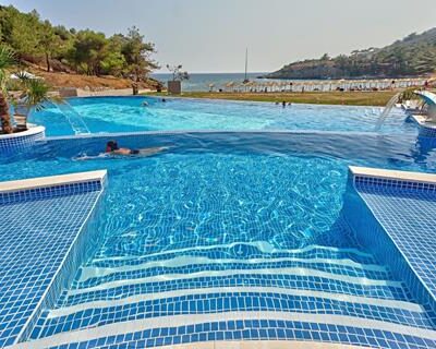 Liefhebbers van rust en luxe opgelet! In het midden van een met olijfbomen begroeide heuvel vind je dit hotel. Hier heb je het gevoel echt even weg te zijn van de drukte. Met een ruim zwembad en de zee dichtbij is het lastig kiezen waar je verkoeling zoekt. Kies een fijne plek uit en plof neer. Als je even opkijkt van je boek richting de zee zie je de contouren van de heilige berg Athos. En met een paar passen ben je al op het strand, waar de ligbedden en parasols al voor je klaar staan. Er is ook genoeg te doen voor de kids, er is een Kid's club, kinderbad en een speeltuin. Je geniet bij dit hotel bovendien van de lekkerste gerechten; In het Olympus restaurant wordt het ontbijt en dinerbuffet geserveerd en je kunt hier ook terecht voor een lunch. In de taverne worden unieke Griekse gerechten geserveerd terwijl je uitkijkt over de zee en bij één van de beachbars bestel je bij de obers een feestelijke cocktail of koud drankje. Puur genieten!
