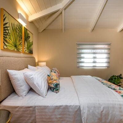 Al snel krijg ik een rondleiding door het hele huis. “Kijk Eliza, dit is de woonkamer met schuifdeuren die uitkomen op een fijn balkon.” Direct zet Maria de deuren open zodat ik zelf kan bewonderen hoe mooi het hier is. Er zijn maar liefst drie slaapkamers, twee badkamers en een ruime keuken. De sfeervolle inrichting is geïnspireerd op de zomer en ik kom direct in de vakantiestemming. Wat fantastisch dat ik hier een paar dagen ga verblijven.