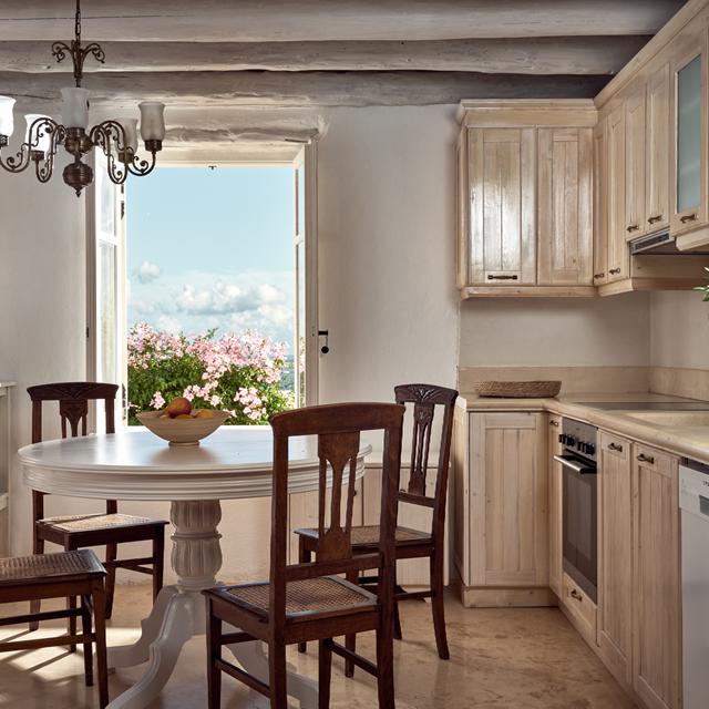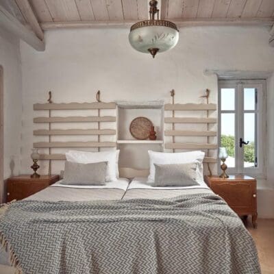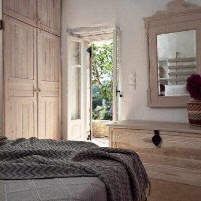 Het interieur van de villa is een mix van hedendaags comfort, vintage vondsten en natuurlijke elementen, waaronder de indrukwekkende rotspartijen. Verder is er een zwembad met genoeg ligbedden voor iedereen, heerlijk voor ontspannen dagen onder de Griekse zon. Ook is er een speciale eethoek ingericht mét buitenkeuken. Wat staat er bij jou op het menu? Gegrilde pulpo, zeebaars of lamskoteletjes? Natuurlijk kun je buiten de villa net zo lekker eten. In Agios Nikolaos op 3 km afstand, barst het van de leuke tavernes!