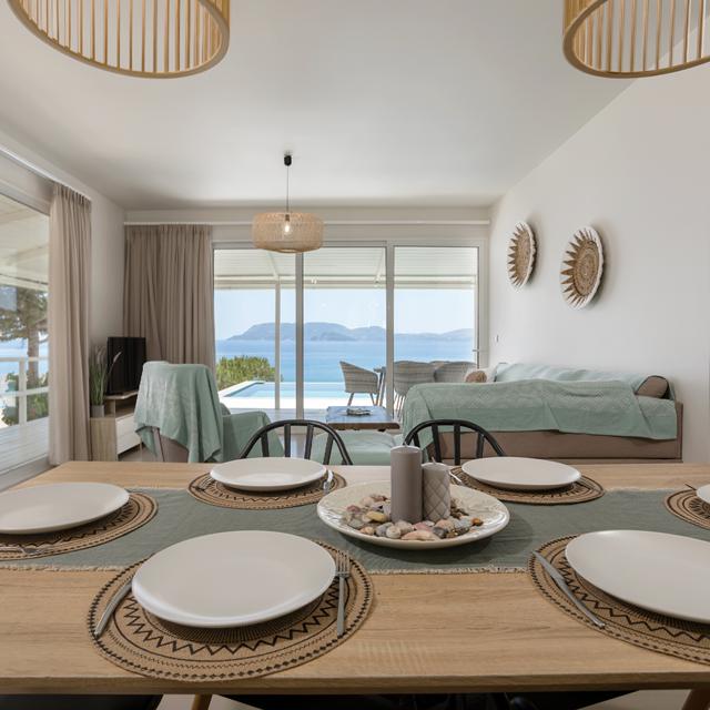 Op vakantie bij Azzure Vista Villa voelt als thuiskomen door het warme welkom van de eigenaar Petros. Hij heeft mij uitgenodigd om een week te verblijven in één van zijn mooie villa's op Zakynthos. Bij aankomst kreeg ik een kleine verrassing, een welkomstmandje met verschillende traditionele producten. Ik kan niet wachten om daar deze week een heerlijke Griekse maaltijd van te bereiden! Ik loop door de woonkamer en de authentieke inrichting geeft me een huiselijk gevoel. De villa is van alle gemakken voorzien, het is echt een plekje om even volledig op te laden. Als ik naar buiten ga, ligt het zwembad met infinity pool al te schitteren in de zon. Het leukste aan de villa vind ik vanaf hier het uitzicht over de azuurblauwe zee en de groene gebergtes van dit Griekse eiland. Door de rustige ligging waan je je even alleen op de wereld, er is zoveel privacy.