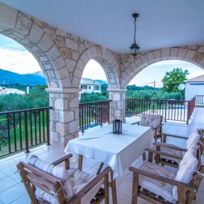 Ik ontmoet eigenaresse Anna bij de houten poort van de villa en ze vertelt honderduit over de Evanthe Stone Villas: 2 prachtige villa's, gebouwd in de traditionele stijl van het eiland Zakynthos. Wanneer Anna de poort opent, worden mijn zintuigen direct geprikkeld. Ik zie een prachtig huis en hoor het geluid van de krekels. De villa straalt één en al comfort en gezelligheid uit. Ik voel dat ik bij een familiehuis terecht gekomen ben. Mijn oog valt op het ruime terras bij de villa en het privézwembad ziet er heerlijk uit. Nadat ik de mooie tuin heb bekeken, vraagt Anna: 'blijf je een paar nachten Eliza?'.