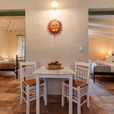 Tijdens mijn rondreis kom ik terecht in het pittoreske dorpje Psarou op Zakynthos. In een lokaal barretje vertelt de eigenaar enthousiast over Ilyessa Cottages en ik besluit het adresje te bezoeken. Bij aankomst staan de kleurrijke huisjes in de groene natuur, en de vriendelijke eigenaar leidt me rond. We wandelen langs olijfbomen en het zwembad, en ik raak meteen verliefd op het rode huisje aan de overkant. “Dit is mijn favoriet,” denk ik gelijk. Ik vraag of ik daar kan verblijven, en de eigenaar nodigt me uit voor een paardrijrit de volgende dag. Wat een gastvrijheid!
