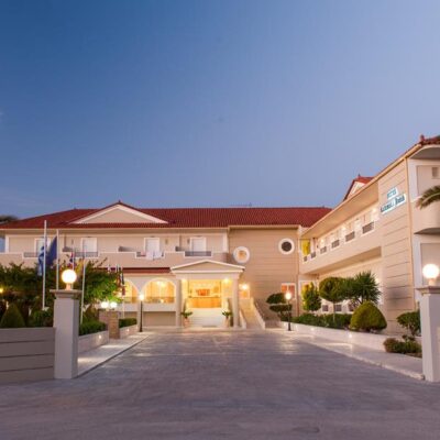Beeld je in je wordt wakker en de zon schijnt door je raam. Je hoort de golven van de Ionische Zee. Dit is de perfecte uitvalsbasis voor een heerlijke zonvakantie in Griekenland. Het hotel ligt direct aan een gouden zandstrand en biedt alles wat je nodig hebt voor een ontspannen verblijf. Neem een duik in een van de zwembaden, ontspan in de wellness of geniet van een smakelijke maaltijd in het restaurant. De comfortabele kamers bieden een adembenemend uitzicht op de zee. Verken de omgeving en ontdek de charme van de nabijgelegen eilandhoofdstad Zakynthos stad, op slechts 10 minuten rijden. Wandel door de smalle straten, bewonder de Venetiaanse gebouwen en geniet van het uitzicht op de haven. Stap aan boord en vaar mee naar het beroemde scheepswrak of bewonder de bijzondere gloed van de Blauwe Grotten.