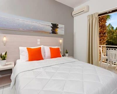 De gastvrijheid voel je direct. Van het warme welkom in Kalamaki tot de barman die je ijskoude drankje al klaar zet op de bar. Het hotel heeft ruime Swim Up kamers, een Grieks “Mezze” restaurant en veel waterpret voor de kleintjes. Voor een vakantie met het gezin zit je hier dus goed. Het kindvriendelijke strand is vlakbij en loopt langzaam af in zee. Ook staat het strand bekend om de schildpadden die er ’s avonds hun eieren leggen. Dat is weer een leuk weetje om thuis te vertellen. Na een gezellig diner met lekkere gerechten, plof je moe maar voldaan op bed. En de volgende dag spring je weer fris het zwembad in onder de warmte van de Griekse zon. Hier wil je eigenlijk niet meer weg!