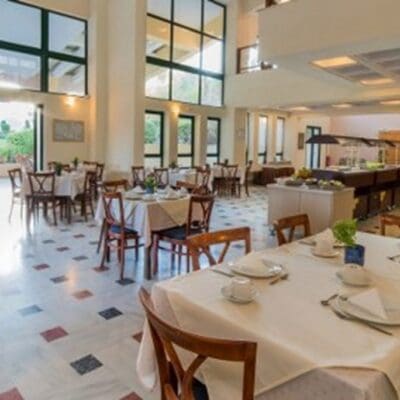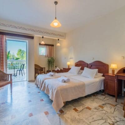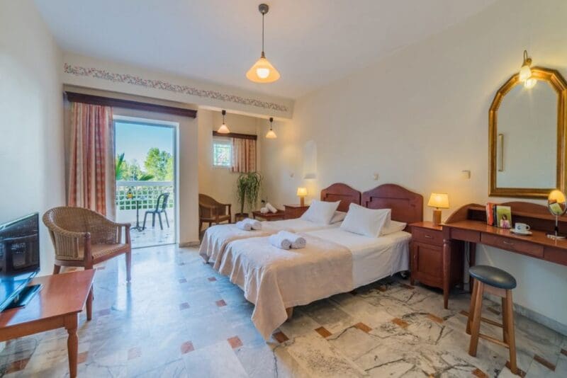 Ilaria Hotel is een comfortabel hotel op Zakynthos, gelegen tussen de levendige badplaatsen Laganas en Kalamaki. Het strand ligt op slechts 1 kilometer afstand, terwijl het bruisende centrum van Laganas op 2 kilometer te vinden is. De ligging biedt de perfecte balans tussen rust en de mogelijkheid om de gezellige omgeving te verkennen. Het hotel beschikt over een groot buitenzwembad met ligbedden en een apart kinderzwembad. In het restaurant kun je terecht voor smakelijke maaltijden en de bar serveert verfrissende drankjes. De kamers zijn ruim en verzorgd ingericht, waardoor je hier comfortabel kunt verblijven. Of je nu op zoek bent naar ontspanning bij het zwembad of de prachtige omgeving wilt ontdekken, Ilaria Hotel biedt een fijne basis voor een heerlijke tijd op Zakynthos!
