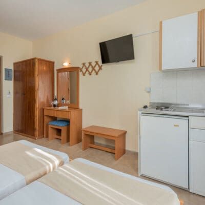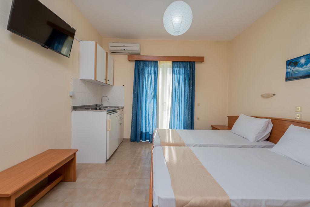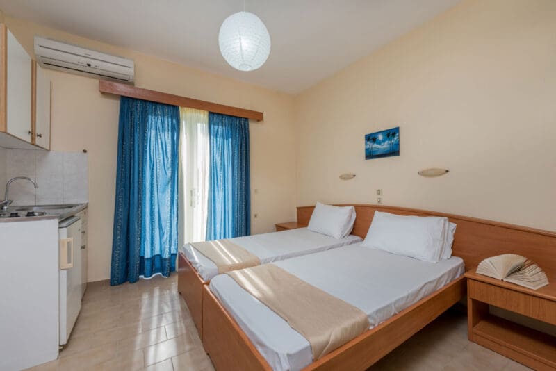 Sorrento Studios is een kleinschalig eenvoudig appartementencomplex met een ideale ligging. Op ongeveer 300 meter van het strand en op ongeveer een kilometer van het levendige centrum van Laganas. In Laganas vind je veel gezellige bars, discotheken en nachtclubs. Wil je even relaxen? Neem dan plaats op een ligbedje bij het zwembad en bestel een drankje of een snack bij de bar. Kortom, Sorrento Studios is de ideale uitvalsbasis om het eiland Zakynthos te ontdekken. TIP: boek deze vakantie als Fly & Go * Gemak voorop: pakketreis met vlucht + deze accommodatie + huurauto * De verzekering voor je auto is geregeld * Vrijheid en avontuur: ontdek in je eigen tempo je vakantiebestemming Bekijk deze Fly & Go vakantie ()