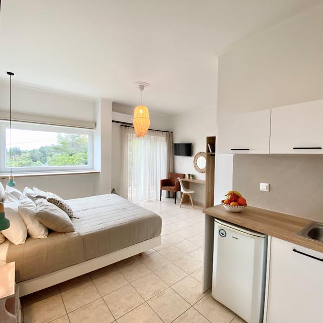 Op deze fijne plek draait het vooral om ontspanning. Dit merk je al bij aankomst. Je wordt ontvangen met open armen en voelt je er direct thuis. En als je het betoverende uitzicht over zee ziet, dan is de drukte van alledag slechts een vage herinnering. Zin om een verfrissende duik te maken of met een boekje in de zon te liggen? Strijk dan neer op een comfortabel ligbed rondom het zwembad. Het is hier heerlijk toeven… In de omgeving is er van alles te doen. Dompel jezelf onder in het landschap en bezoek de blauwe grotten of vaar met de ferry in een uurtje naar buureiland Kefalonia.