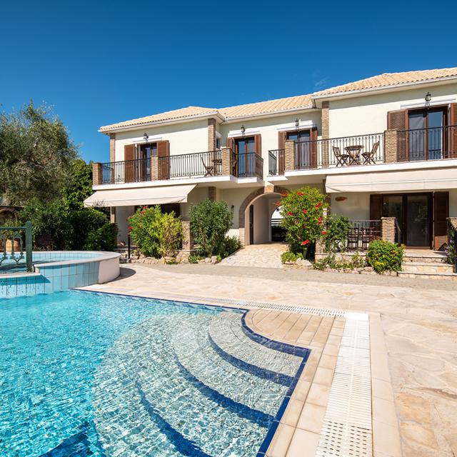 Olive Tree Villas ligt net aan de rand van het centrum, waardoor je kunt genieten van de rust, maar toch alles binnen handbereik hebt. Het strand is dichtbij, perfect voor een ochtendduik in de Ionische Zee. De vier prachtige, tweeverdiepingsvilla's zijn omringd door weelderige tuinen en bieden zowel luxe als comfort. Het zwembad is ideaal om in te ontspannen, en voor de kleintjes is er een apart kinderbad. Deze villa's zijn dus ook kindvriendelijk. Of je nu wilt luieren in de zon, een wandeling naar het centrum wilt maken of gewoon wilt genieten van de serene omgeving, Olive Tree Villas biedt alles wat je nodig hebt voor een onvergetelijk verblijf op Zakynthos.
