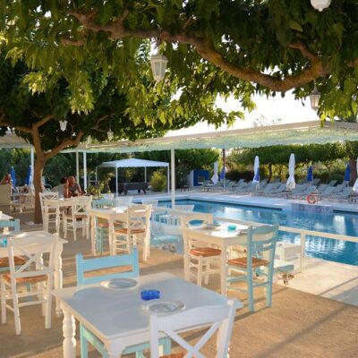 Dit Adults Only verblijf ligt heerlijk rustig, maar wel op loopafstand van het brede zandstrand en het gezellige centrum met winkels en barretjes. De typisch Griekse vakantiesfeer verwelkomt je lichte gebouwen, groene tuinen en een fijn zwembad waar je zo de hele dag blijft hangen. Met een poolbar, restaurant en comfortabele loungeplekken heb je alles bij de hand. 's Avonds geniet je van een drankje aan de bar of wandel je zo het centrum in voor een gezellige avond. Precies zoals vakantie hoort te zijn.