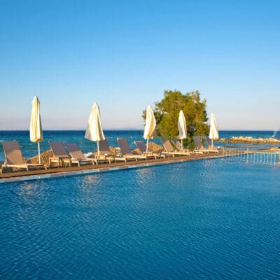 Hotel Golden Coast Resort ligt in een schilderachtige regio direct aan een knusse privé baai op Drosia Beach. De Ionische Zee weerspiegelt de natuurlijke schoonheid van het gebied en doet het hotel zijn naam eer aan, hier geniet je in alle rust van de schitterde ondergaande zon die de kust goudgeel kleurt. Dit moderne, elegante hotel is een perfecte plek is voor zowel een vakantie met kinderen als een romantisch uitstapje voor twee. Omgeven door een prachtige natuur en met uitzicht op de azuurblauwe zee belooft hotel Golden Coast Resort je een ontspannen en zorgeloze vakantie. Lekker eten doe je in het Mediterrane buffetrestaurant en in de ruime, strak gestijlde kamers kom je heerlijk tot rust. Ondanks zijn rustige ligging heeft het hotel ook een ideale uitvalsbasis om de schoonheden van het eiland Zakynthos te verkennen.