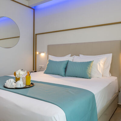 Mirage Bleu is een spiksplinternieuw hotel vlak bij het strand en is gelegen in Tragaki. Voor de rustzoeker of natuurliefhebber is dit de ideale omgeving. Heerlijk wandelen door het schilderachtige dorpje of door de groene heuvels rondom het dorpje. Ben je een echte cultuurliefhebber? Breng dan onder andere een bezoek aan Zakynthos-Stad. Breng een bezoek aan de Agios Dionysios kerk met haar hoge klokkentoren, het Somosplein of een van de musea. Het kleinschalige en moderne Mirage Bleu biedt ruime en moderne kamers, waaronder kamers met een privé zwembad. In het buffetrestaurant kun je genieten van heerlijke gerechten en een drankje bestel je bij de lounge bar. Verkoeling kun je vinden in het zwembad omringd door een zonneterras met ligbedden. Geniet van nieuwe niveaus van ontspanning en verken het prachtige eiland Zakynthos.