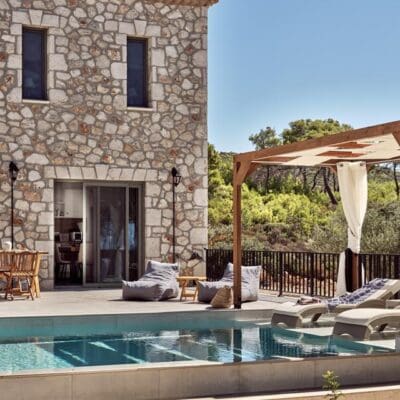 De villa is een prachtige combinatie van traditie en moderne voorzieningen en al mijn verwachtingen worden overtroffen. Michalis treft mijn blik en begint vol trots te vertellen. Elke villa heeft een eigen privézwembad, compleet met ligbedden en een gezellige hoek om buiten te kunnen eten en te genieten. Binnen is het al net zo prachtig; werkelijk een lust voor het oog en met veel mooie details gedecoreerd. Het was altijd een droom van Michalis en zijn vrouw om dit mooie plekje op te bouwen zodat hun gasten kunnen genieten van de pure natuur van het eiland Zakynthos. Dit is goed gelukt en wat is dit een heerlijke plek!