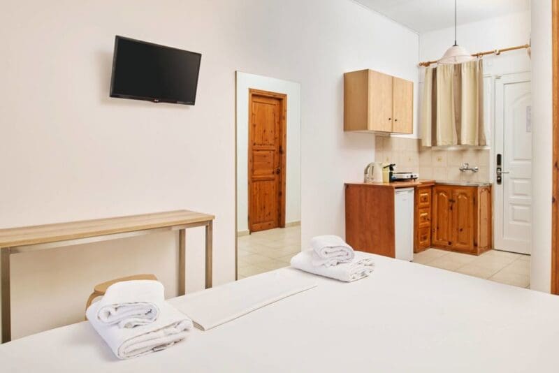 In de groene heuvels van Tsilivi, omringd door palmbomen en olijfbomen, vind je Ionian Aura Apartments. Dit kleinschalige complex combineert rust, comfort en een toplocatie. Op slechts 900 meter ligt het prachtige Blauwe Vlag-strand van Tsilivi, perfect voor een ontspannen dag aan zee. Geniet van het zwembad, terwijl de kinderen zich vermaken in het kinderbad. Liever wat actie? Het gezellige centrum van Tsilivi bereik je al na een korte wandeling, en Zakynthos-Stad ligt op slechts 5 kilometer afstand. Of je nu komt voor relaxen, cultuur of een combinatie van beide, bij Ionian Aura Apartments zit je goed!
