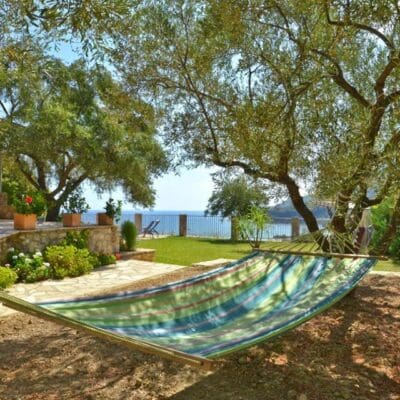 Via een smal landweggetje dat de bergen door kronkelt, kom je uit bij Secrets Villa Tireda. Drie traditionele handgemaakte stenen villa’s die vernoemd zijn naar de drie kinderen van de eigenaar Sakis: Timos, Regilena en Daniel. Het eerste wat je waarschijnlijk opvalt als je aankomt bij de villa’s is het uitzicht. Je kijkt hier uit over de azuurblauwe baai, het gebergte en het schildpaddeneiland Marathonissi. Sakis is super vriendelijk en geeft graag een mini rondleiding door je villa.