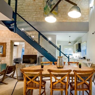 Ik stap de woonkamer van Zante Soleil Villa binnen en word meteen betoverd door de charme van het interieur. De authentieke stenen muren geven de ruimte een warme, traditionele uitstraling, terwijl de grote trap in het midden van de kamer een indrukwekkende doorkijk biedt naar de bovenverdieping. Ik stap naar buiten, en daar wacht een prachtig privézwembad met een royaal terras. De zon schijnt volop en ik besluit me lekker op een ligbed te nestelen. 's Avonds bereid ik een heerlijke maaltijd op de barbecue en geniet ik van een ontspannen diner onder de overkapping. Het is zo rustig en mooi hier, echt een plek om je volledig op te laden.