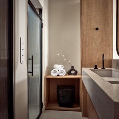 Het is nog vroeg in de ochtend als ik wakker word in mijn suite bij Yoma Cove. Ik trek de gordijnen open en word begroet door het schitterende uitzicht op de turquoise zee, die kalm en vredig voor me uitstrekt. Mijn privézwembad glinstert in het zonlicht, en ik neem mijn tijd om te genieten van de stilte voordat de dag begint. Het interieur van de suite straalt rust uit door de aardetinten en het verfijnde design, waardoor ik me direct op mijn gemak voel. Ik bestel via WhatsApp een ontbijt bij het Mooring Café, en binnen no-time wordt het bij mijn deur afgeleverd. Na het genieten van het ontbijt, huur ik een fiets en rijd ik naar het geheime Agriosykia-strand, dat alleen de locals kennen. Het is de perfecte manier om de dag te beginnen in deze rustige, idyllische omgeving.
